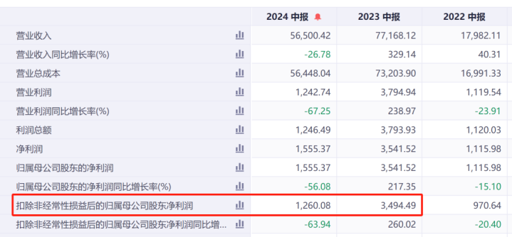 这个企业,我径直看了他的2024年的中报,他的功绩那是相称的大幅下滑。