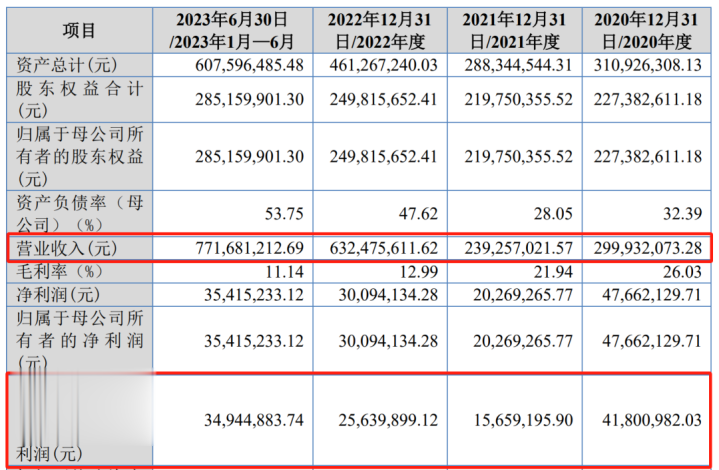 咱们来看他的功绩,收入从两个多亿增长到了六七个亿,况且他是2023年的上半年就有7个多亿,他的收入增长得倒黑白常快。他的这个利润就很仙葩了,从4,180万降到1,566万,又增长到2,564万,然后在2023年的上半年又增长到了3,494万。这个一看等于个周期性的行业。
